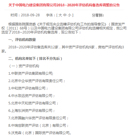 国众联入围中国电力建设集团有限公司2018—2020年评估机构备选库