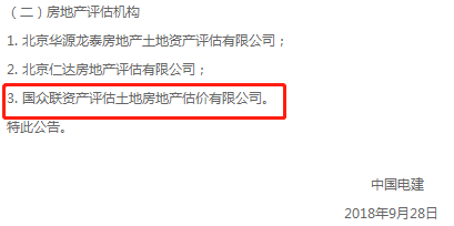 2018年9月28日,根据国务院国资委《关于规范央企选聘评估机构工作的指导意见》(国资发产权〔2011〕68号)以及中国电力建设集团有限公司评估机构选聘相关规定,中国电建选定了2018~2020年评估机构备选库。按照国家法律、法规有关规定,经过公开、公平、公正的评议,国众联凭借丰富的专业经验和强大的综合实力,在众多竞争机构中脱颖而出,成功入围中国电建房地产评估机构备选库。