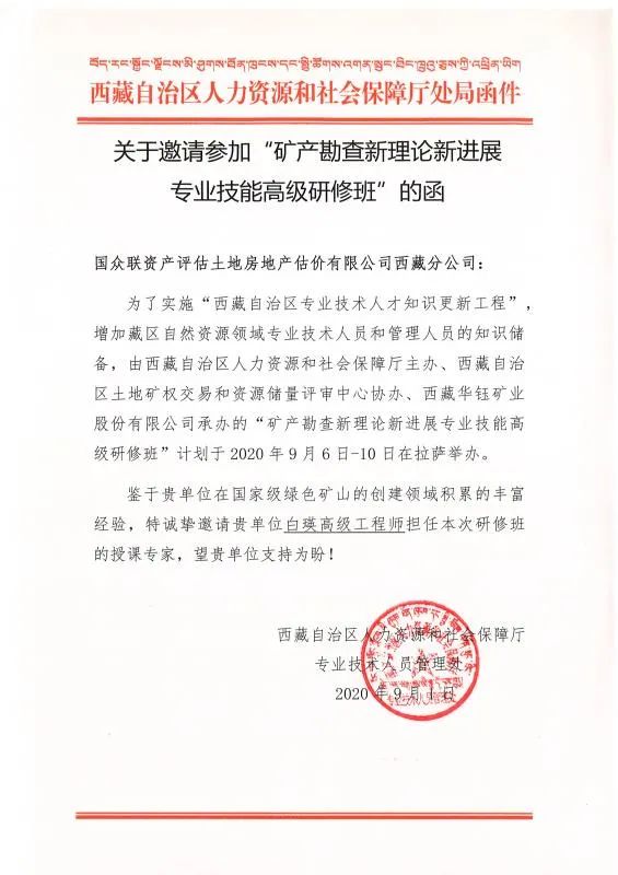 国众联白瑛博士受邀参加西藏自治区“矿产勘查新理论新进展专业技能高级研修班”开班仪式