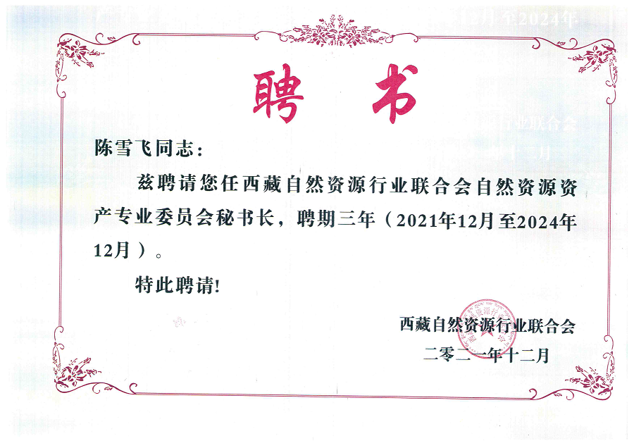 国众联白瑛、西藏分公司陈雪飞荣任西藏自然资源行业联合会自然资源资产专业委员会副主任、秘书长