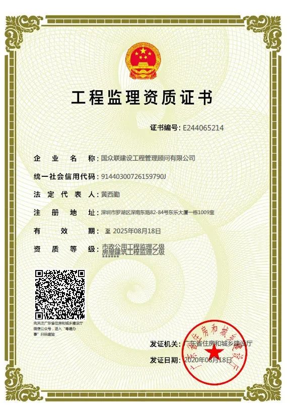 国众联工程顾问公司获批工程监理资质